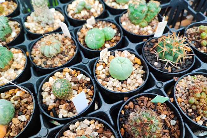 多肉植物を現地の自生地をイメージしながら寄せ植えをします。