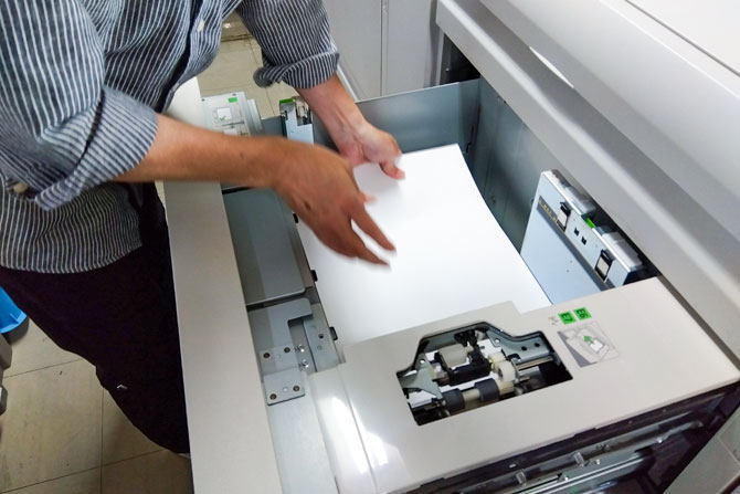 デジタル印刷機で、スマホの画像をその場で印刷しオリジナルノートを作ります。